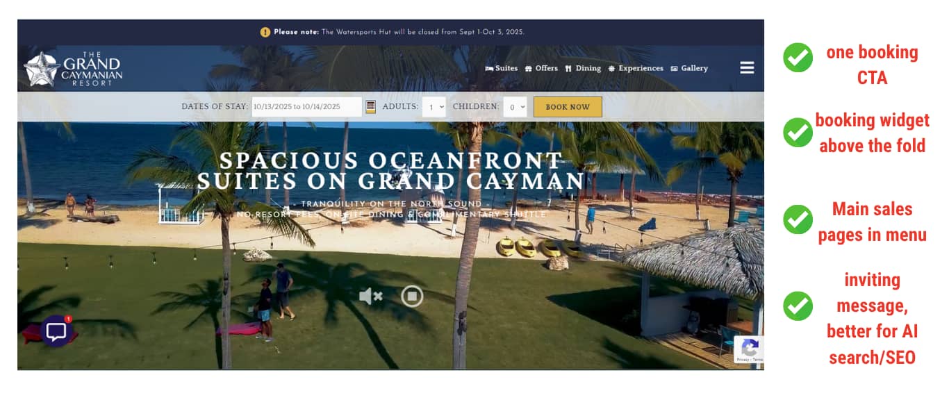 - Guest-first messaging, not hotel-first copy clutter.